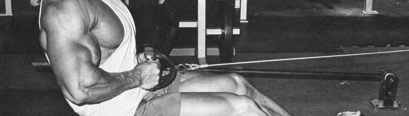 Description: These are to be done “Arnold style.” Rather than maintain a completely upright posture, allow the weight to pull you forward a bit on the negative (you may also protract your shoulders). On the negative, pull back with your upper back, shoulders, and generate a bit of force with your lower back. While technically “sloppy” form, this version of the row allows for a much greater stretch and contraction of the traps, rhomboids, and lats. Just be smart with the weight and don’t blow a disc.